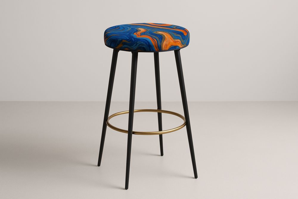 Hoker tapicerowany bawełną w kolorze niebiesko-pomarańczowym, stalowy, 75 cm