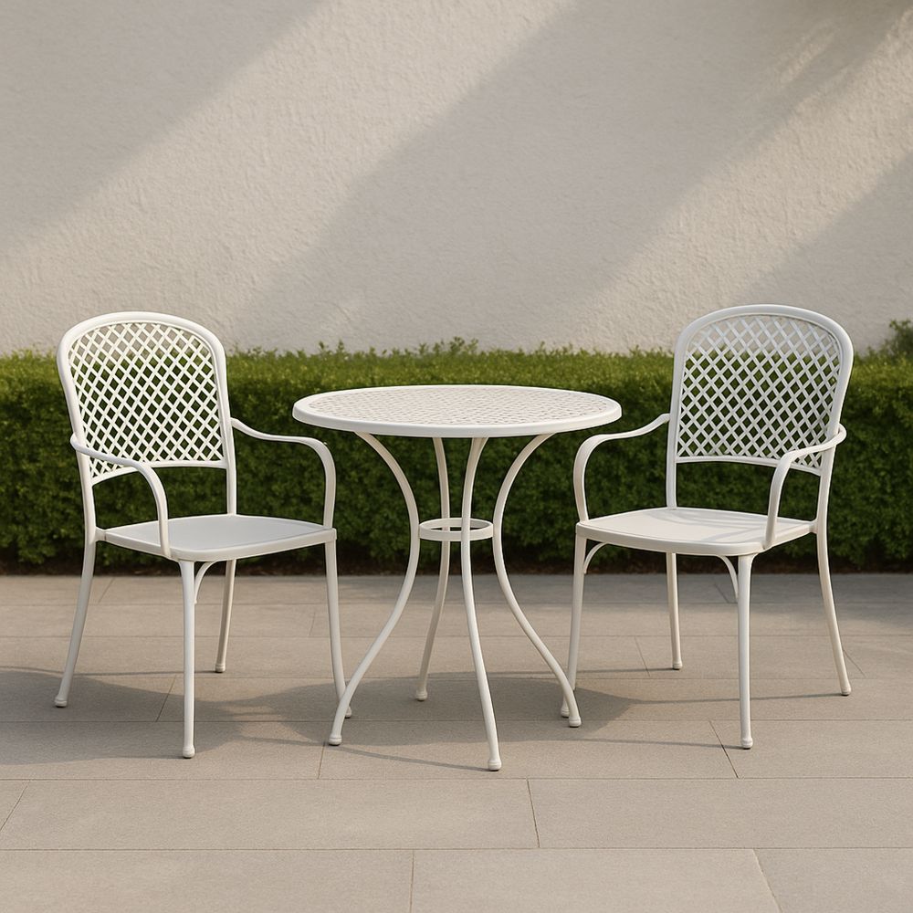 Zestaw mebli ogrodowych metalowych biały stół okrągły i 2 krzesła