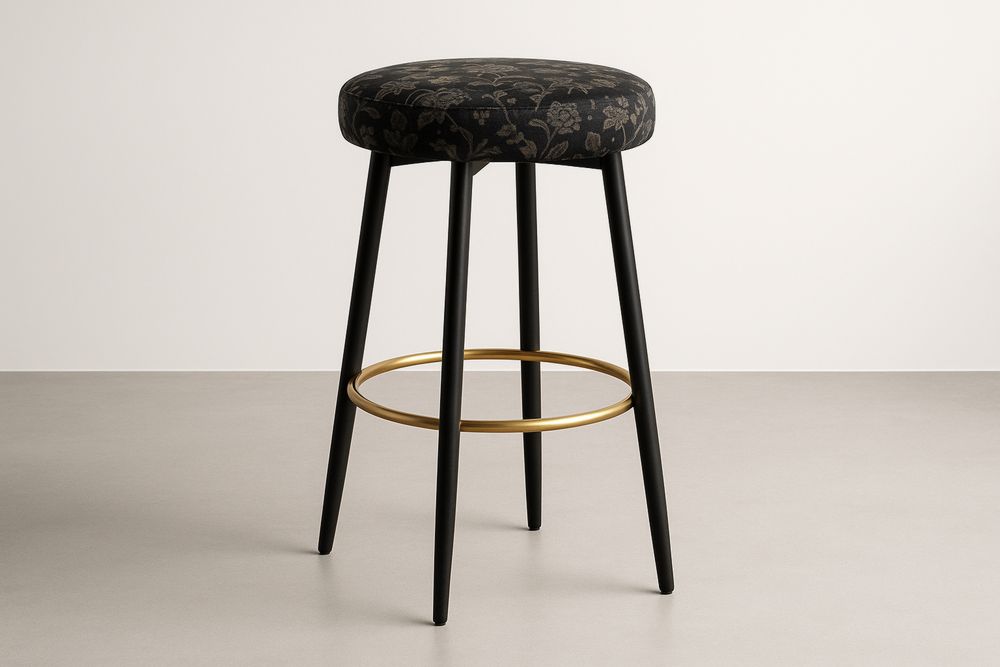 Hoker z tkaniny, stalowy, czarny i złoty, z siedziskiem z poliestru
